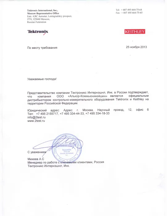 2TEST — официальный дистрибьютор измерительных приборов Tektronix и Keithley