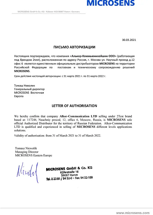 2TEST — официальный дистрибьютор MICROSENS в РФ