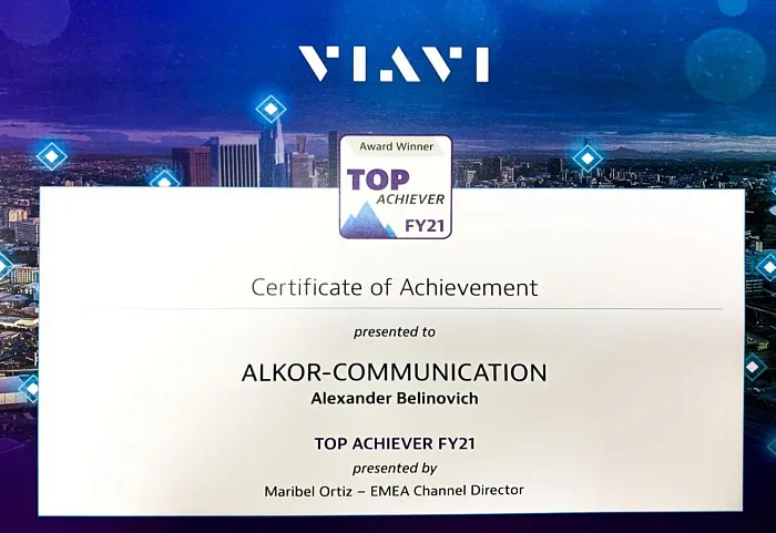 2TEST-лучшая компания за 2021 по продажам оборудования VIAVI Solutions