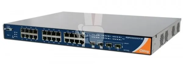 Коммутатор ORing RGPS-92222GCP-NP-E имеет 22 порта 10/100/1000Base-T(X) и 2 комбопорта 100/1000Base-X SFP, также имеет функция питания PoE в соответствии с IEEE 802.3at.