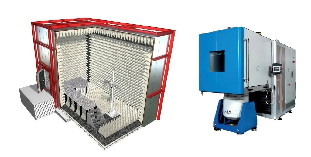 Испытательное оборудование. Оборудование для антенных измерений, акустических испытаний и оснащения лабораторий ЭМС: безэховые экранированные, реверберационные и заглушенные камеры, комплексы на устойчивость к акустическому шуму, вибростенды, климатические камеры, динамические стенды, оборудование для испытаний на устойчивость к ВВФ, вакуумное и термическое оборудование.