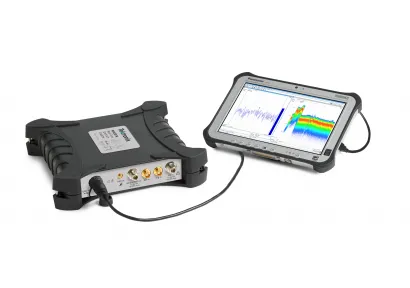 Диапазон рабочих частот анализатора лежит в пределах от 9 кГц до 7,5 ГГц, обеспечивая полосу пропускания 40 МГц в реальном времени, с возможностью опционального подключения следящего генератора для определения расстояния до дефекта, измерения обратных потерь (потерь на отражения), КСВН.