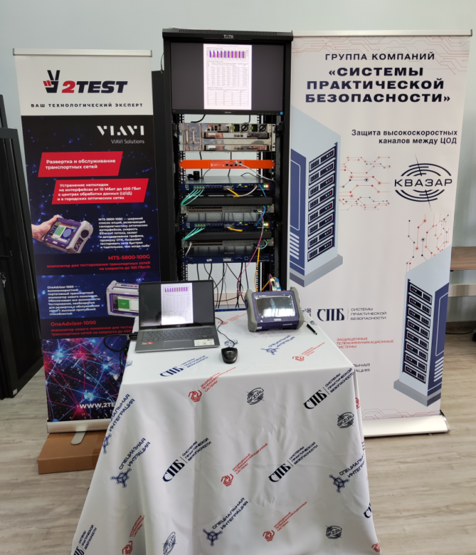 5 мая специалисты компании 2TEST — отечественного производителя, разработчика, поставщика измерительного и телекоммуникационного оборудования и комплексных решений промышленной автоматизации — провели тестирование и подтвердили работу высокоскоростного модуля шифрования ВМШ-MUX-1U из линейки СКЗИ «Квазар» производства ООО «Системы практической безопасности» с телекоммуникационным оборудованием, использующим для передачи информации стандарт Ethernet40G. Тестирование проводилось на испытательном стенде компании ООО«Специальная интеграция».