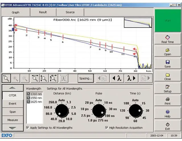 Магистральные оптоволоконные линии требуют от измерительных приборов широкого динамического диапазона для покрытия больших расстояний, а городские ВОЛС – малых мёртвых зон из-за близости расположения точек подключения. Рефлектометр FTB-7500E – универсальное решение для тестирования городских и магистральных оптоволоконных линий благодаря большому (до 45дБ) динамическому диапазону и малым (0,8 м для событий и 4 м для затухания) мёртвым зонам.