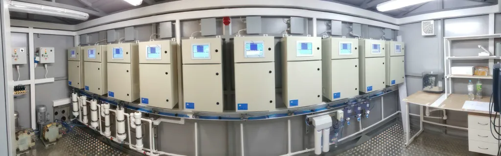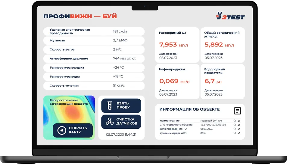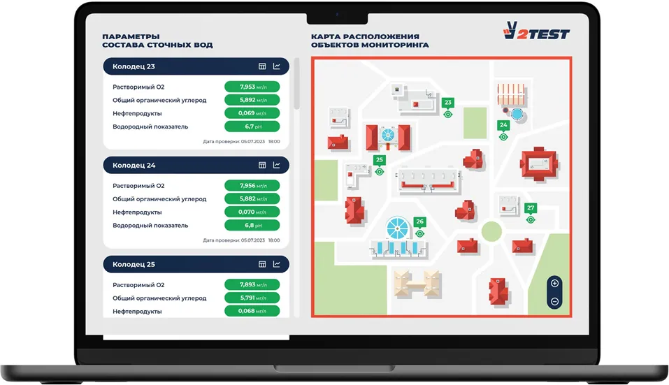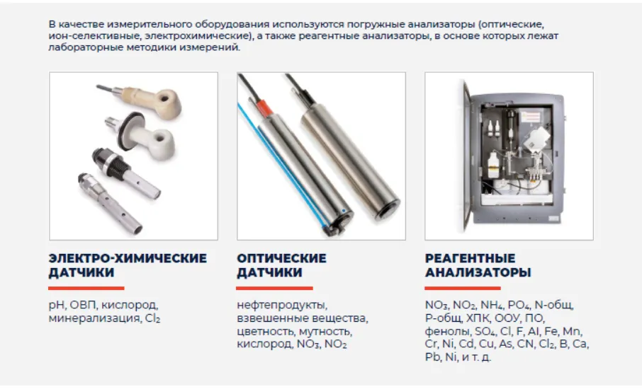 Система разработана для осуществления online контроля уровня концентраций загрязняющих веществ в сточных водах.