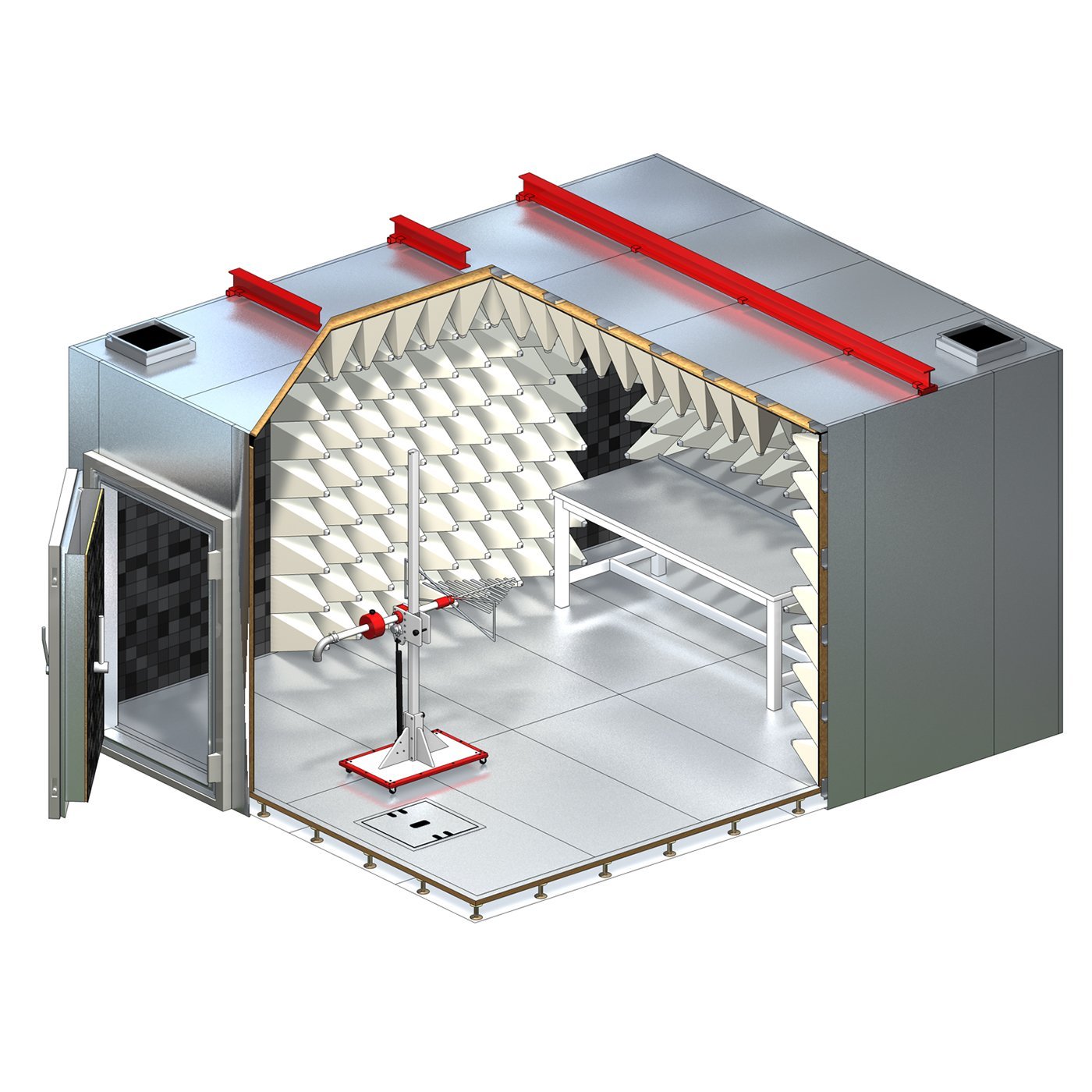 Стены и потолок камеры облицовываются ферритовыми поглотителями типа F006 и дополнительными гибридными поглотителями типа Н450 приблизительно до середины камеры. В стандартной версии пол камеры состоит из обычного фальшпола, а напольные поглотители и дополнительное заземление предоставляются опционально.