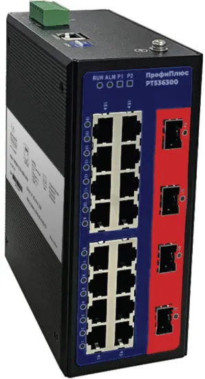 Промышленный 10-портовый гигабитный коммутатор Ethernet ПрофиПлюс серии PT735869, специально разработанный для применения на объектах железнодорожной отрасли и энергетики (электрические станции, подстанции). Сертификация в соответствии со стандартами EN50121-4: 2006 (более жесткие требования по электромагнитной помехоустойчивости) и EN50125-3: 2003 (температура, климат, вибрация и ударопрочность)