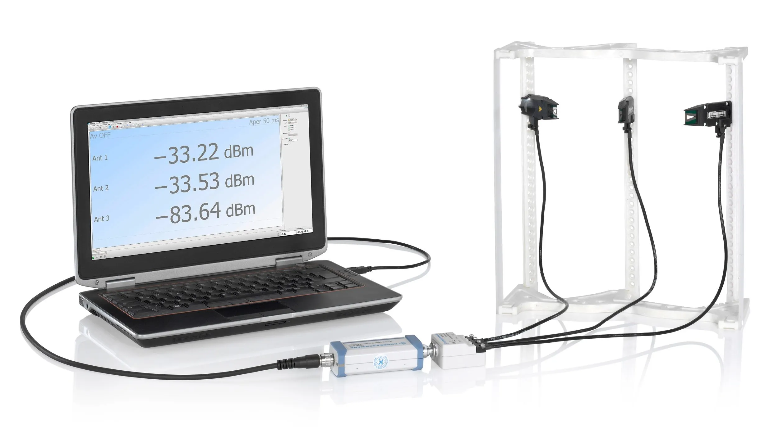 В комплексе R&S NRPM применяется высокочувствительный диодный детектор, который встроен непосредственно в антенну, благодаря чему антенные модули NRPM-A90 и NRPM-A90D способны измерять мощность до -76 дБмВт. Так, например, даже при установке тестируемого устройства, обладающего мощностью передачи всего -10 дБмВт, на расстоянии 1 метр, система по-прежнему сможет определять принимаемую на антенном модуле мощность с очень высокой точностью.
