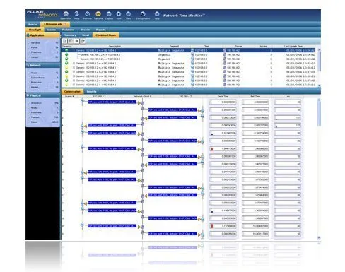 Автоматический многосегментный анализ поддерживает совместный захват, получение и анализ пакетов сети из нескольких OptiView XG и NTM, что в 5 или более раз уменьшает затрачиваемое время, необходимое для анализа сложных проблем приложений, проходящим по нескольким сегментам сети.